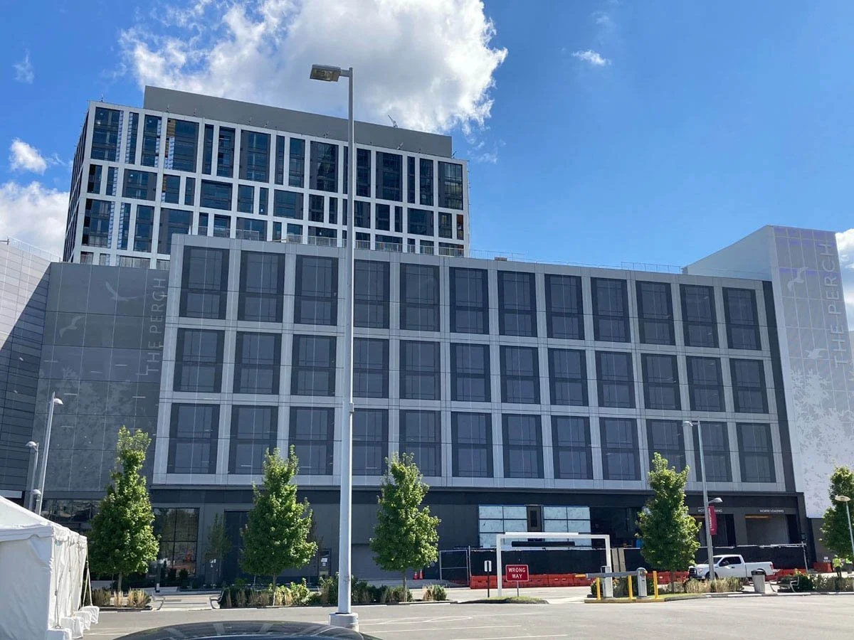 Structurflex/Fabric Structures was commissioned to assist in collaborating with the design team to create a very unique long-lasting temporary facade of a parking garage for Capital One Block C called The Perch. The large parking garage will be lined with new condos that will be built along the perimeter of the garage in 10 to 15 years.